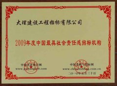 2009年度中國最具社會(huì)責(zé)任感招標(biāo)機(jī)構(gòu)榮譽(yù) 日期:2019-02-26點(diǎn)擊:0
